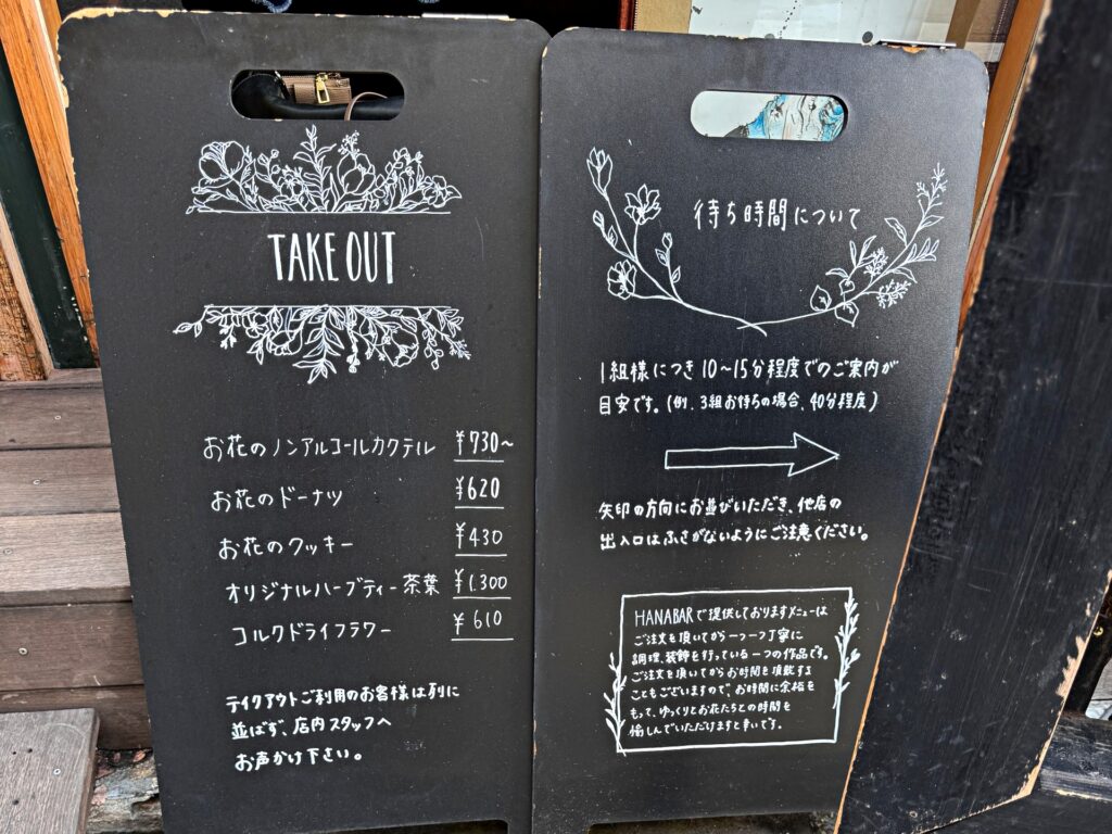 メイン通りから少し歩いたところにあるお店です。入口には手描きの黒板。繊細なお花のイラストが綺麗で素敵!