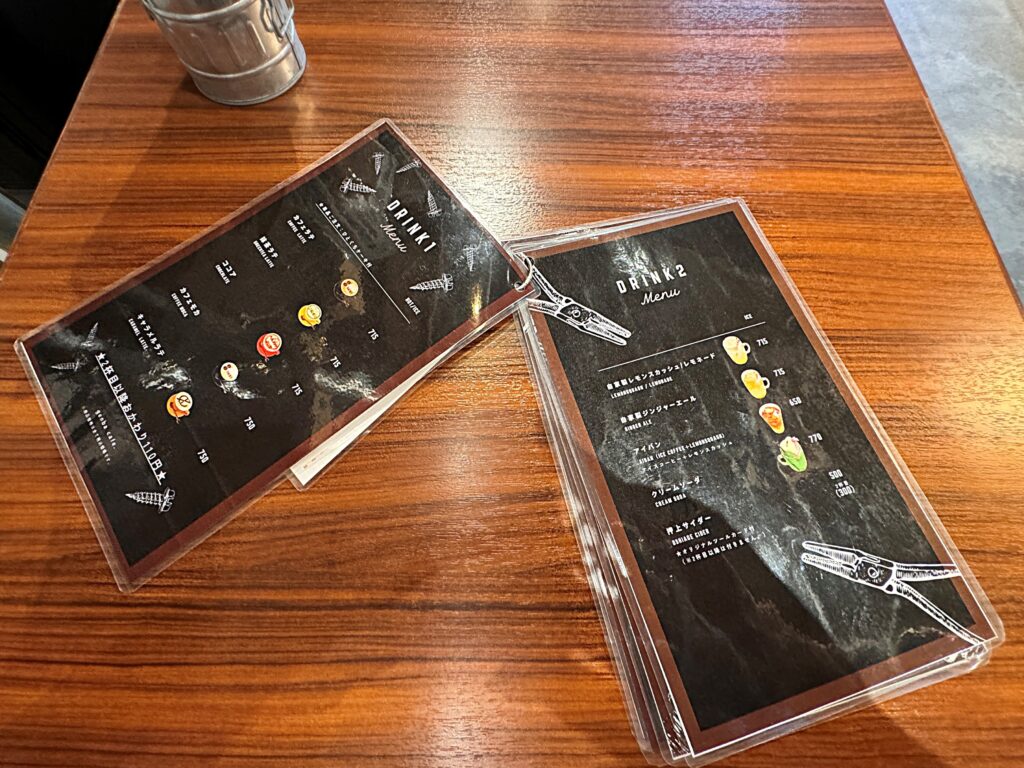 注文をしたら好きな席に着きます。テーブルにもメニューがあったので早速ご紹介!