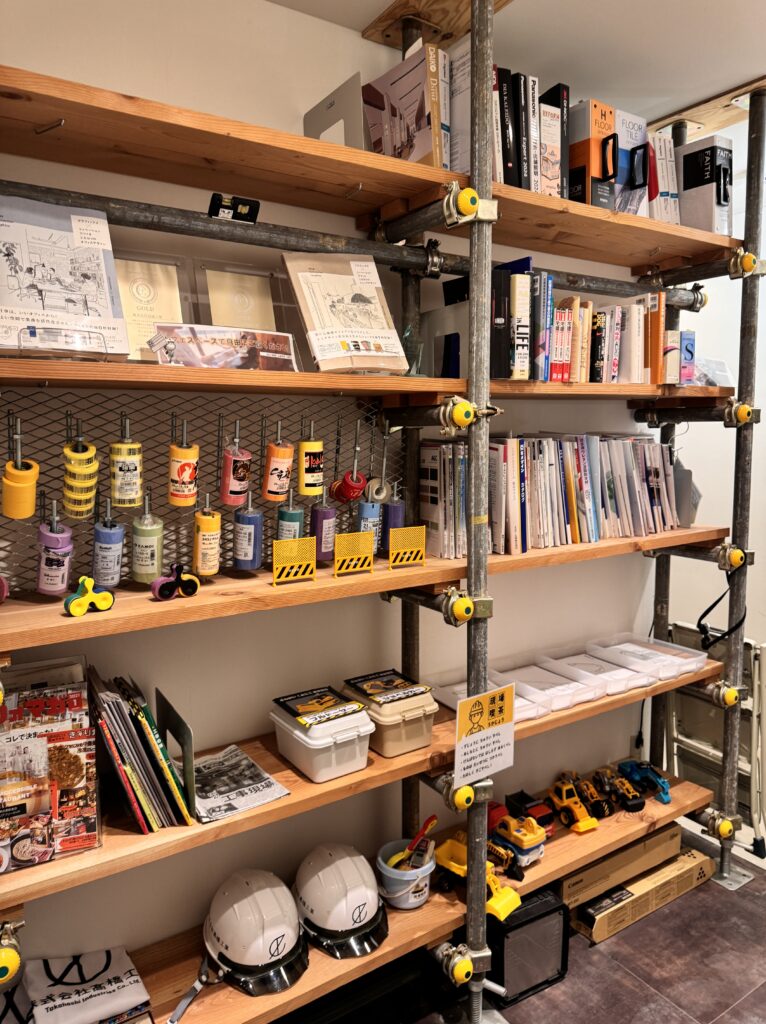 「現場喫茶」の名前に嘘偽りない、本当に「現場」でした。ショールームなので、建設に関する資料もたくさんありましたよ!