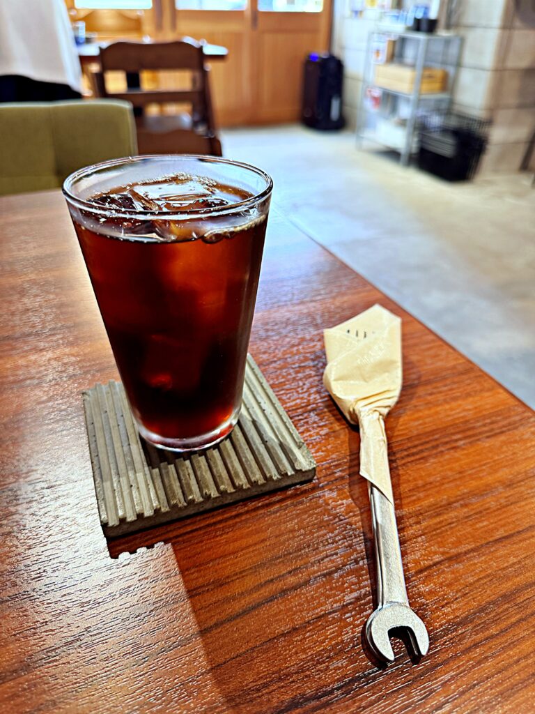 一見すると普通のアイスコーヒーですが、コースターが!そしてカトラリーが!