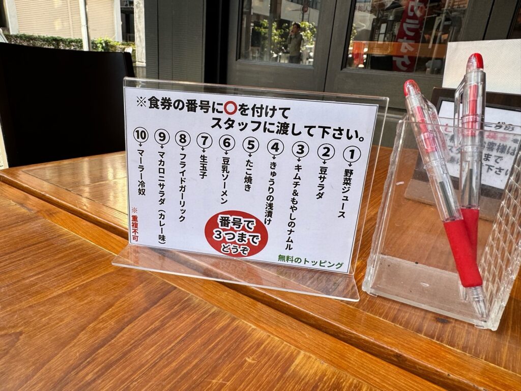 「さ、さむ!」と、震えながら日陰の席に座るや否や「注文が決まったら声かけてくださいね」と、店員さんは笑顔で去っていった!「な、なんのことでしょうか?」さっき券売機でお金を払ったのは幻!?決めるってなんぞや?バリカタとか?マシマシとか?何を?