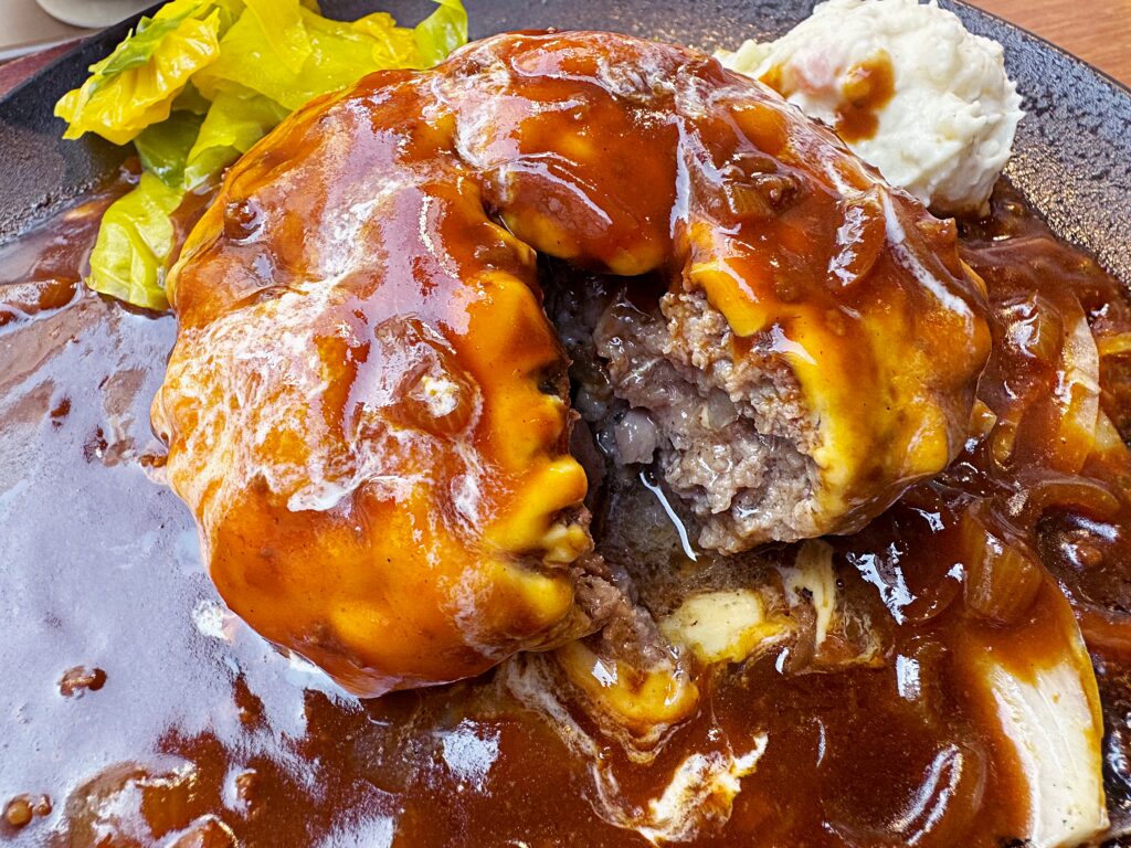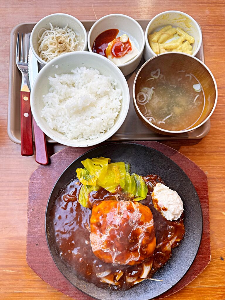 とはいえ、美味しいものはやっぱり美味しい!もし私がこの場で総入れ歯になってもしっかり味わえる柔らかいハンバーグ!飲み物のごとくスルスルと喉の奥へ消えていきました。