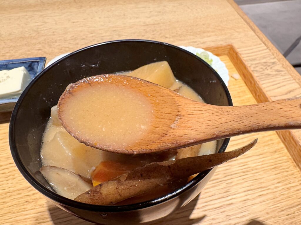 ベースの味噌汁はクセのない味です。MISOJYU様のホームページによると厳選したかつおぶしや昆布から摂った出汁にオリジナルブレンドの味噌で作るとのことでした。