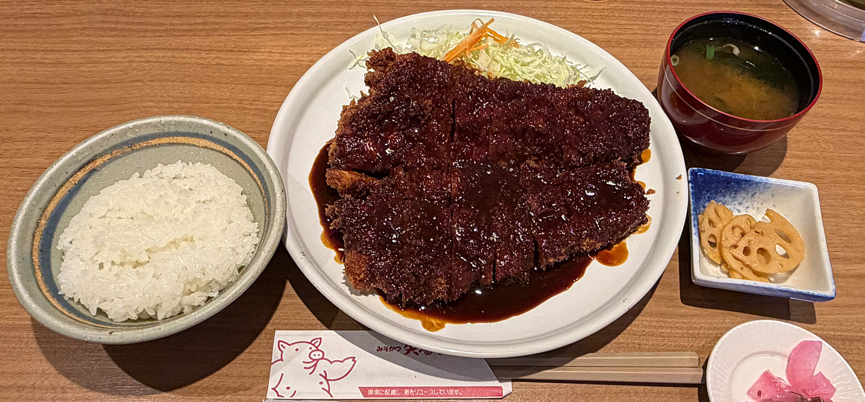 え?確かに立派な「わらじ」クラスの大きさのトンカツではありますが…。頼んだのは味噌カツだったのでは?
