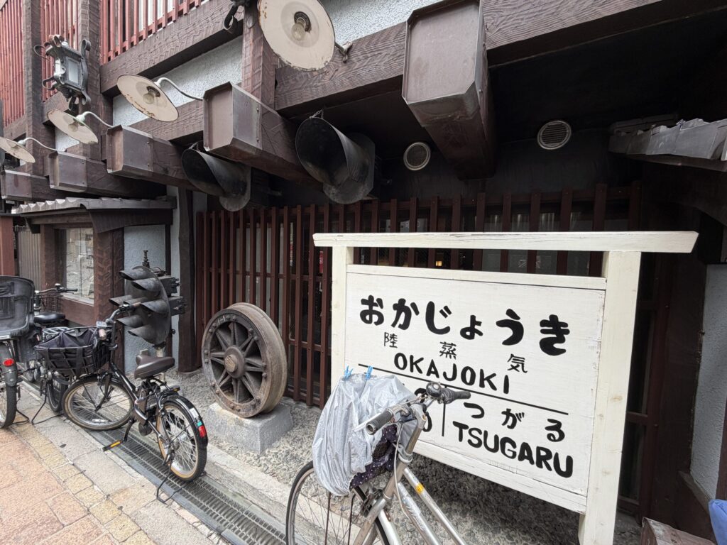 店名は「陸蒸気(おかじょうき)」様。つまり蒸気機関車ということですね。あまりにも人が多いので正面からの店頭の撮影は最後に持ち越し。陸蒸気という名前にふさわしい外観なのです。