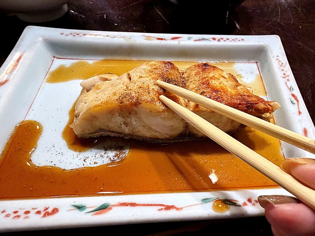 ちなみに「沖めだい」というのはスズキ目エボシダイ科に属する白身の海水魚。名前の通り沖合に生息する目の大きな魚。希少種であり市場にはあまり出回らないそうです。クセがなく柔らかい身はプリッとしていて上品な味とのこと。(しょくたんによるインターネット調べ)