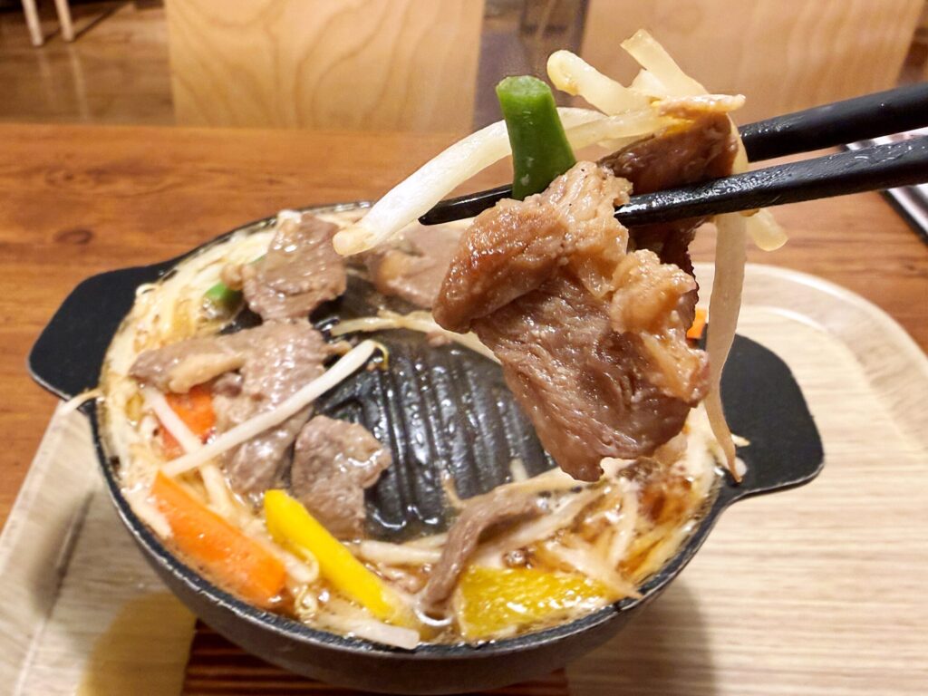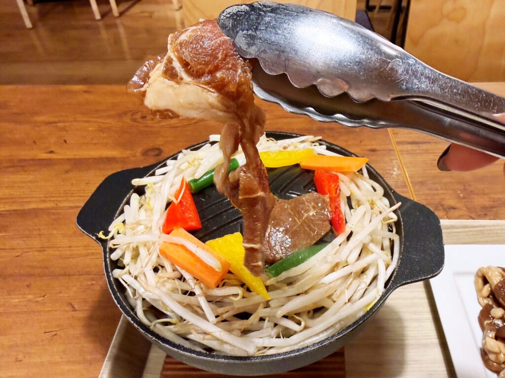 鉄板が温まってきたところで早速お肉を乗せていきましょう!
