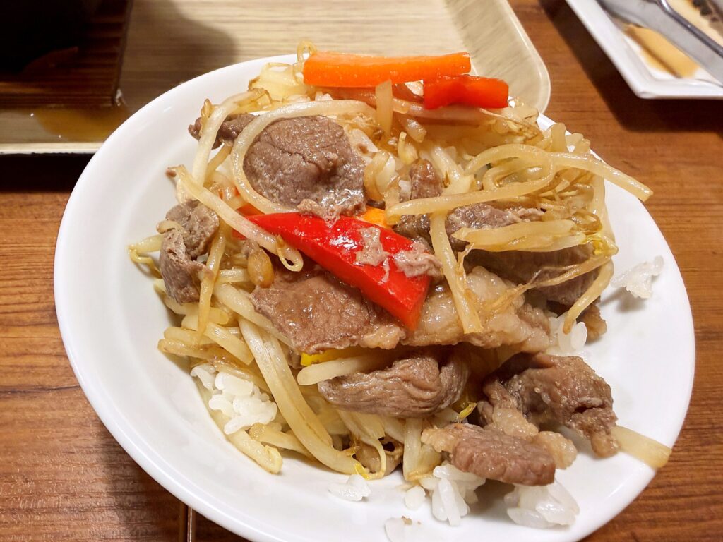 少しずつ食べるのもいいけれど、ドカッと白米の上に乗せて「ジンギスカン丼」というのもいいかも!と思い立ったしょくたん。ちょっとお行儀は悪いけれど牧場で食べたあの日のことを思い出す…