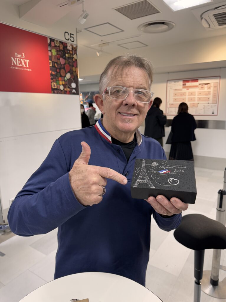 箱にサインを書いていただき撮影をお願いしたところ、穏やかで優しいフレデリックさんが「一緒に写真に写ろうよ!」と言ってくださったのでツーショントも別に撮っていただきました!記念になりました~!