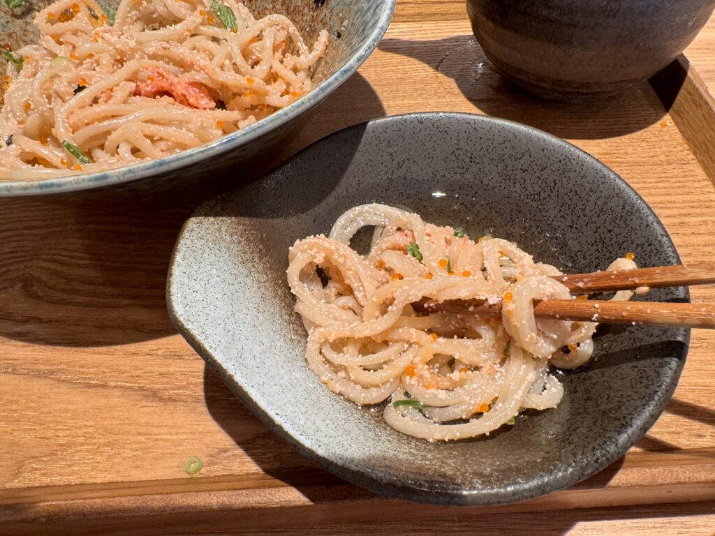 初来店なのでまずはスタンダードと思われる「炙りたらこのお出汁スパゲティ」をチョイス!