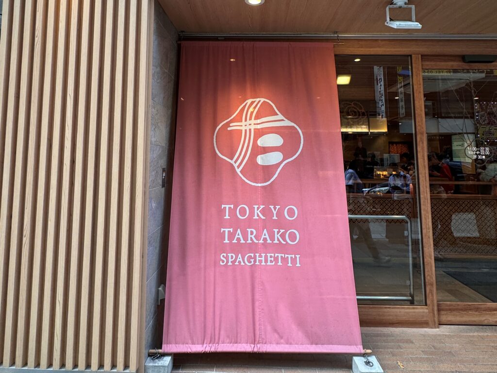 店頭にはパネル入りのポスター。和風な造りの店頭にはたらこカラーのピンクの暖簾。和モダンな雰囲気が素敵です!待合スペースでしばらく待ってから早速入店です!