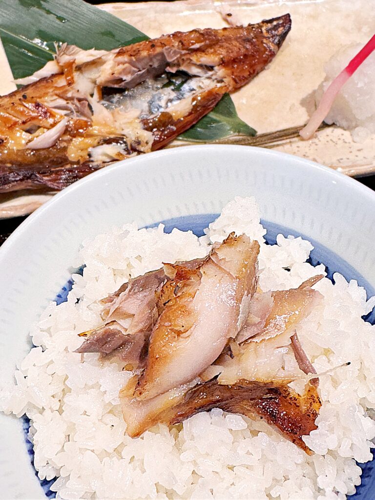 味醂の甘さと魚の程よい塩加減。干物にすることにより旨味成分が増して濃厚な味わいになるんですよね。家ではここまで上手く綺麗にこんがり焼けないので、やはり焼き魚はお店でいただくのが一番かも!?