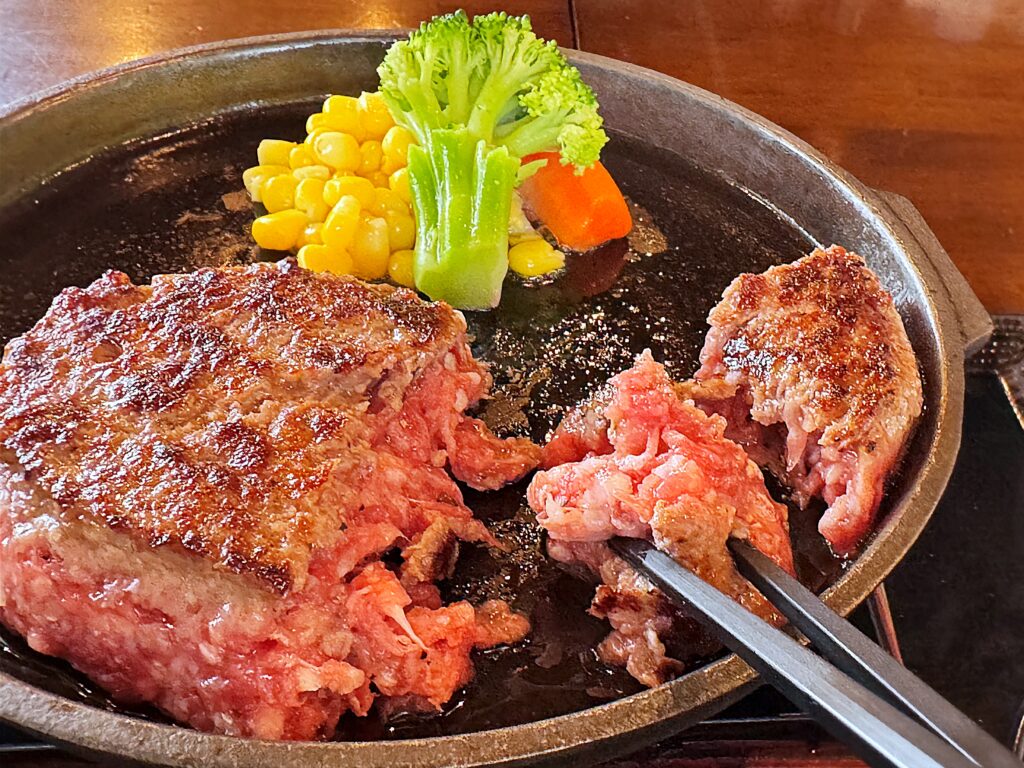 鉄板の上ではどんどん次のハンバーグも焼けてきて忙しくなってきました。焦がしたら勿体ないし、鉄板の上から出すと冷えちゃうし。慌てて食べるしょくたん!