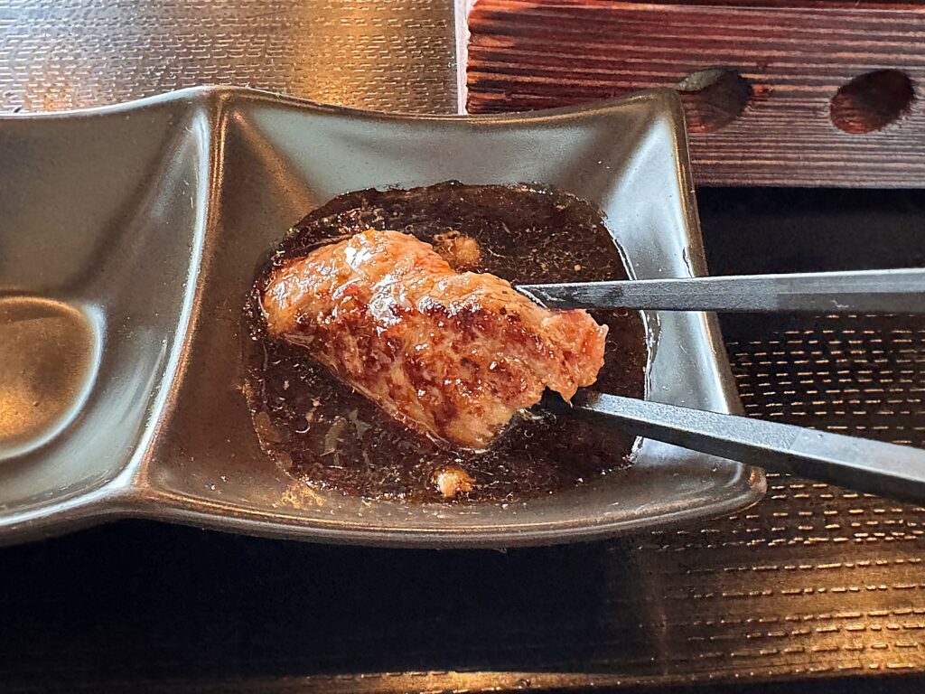 じゅう~じゅう~という音が心地よく響き、お肉の焼ける香りが漂います。1分間はこのまま触らないで下さいと店員さんから教えていただき…耐えます。