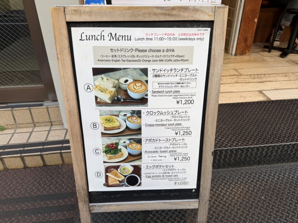 店頭には三角看板メニュー。ペリカンの食パンを使ったメニューがメインです!これは楽しみ~!