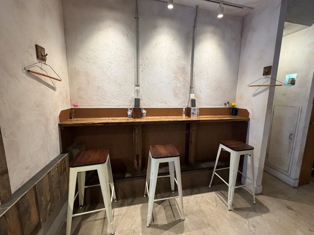 こだわりの雑貨屋さんみたいな内装はウッドやアイアンを丁寧に取り入れ、思わず長居したくなるオシャレカフェではありますが…人気店なので最大60分の滞在です。先にお会計を済ませておひとりカウンター席へ!