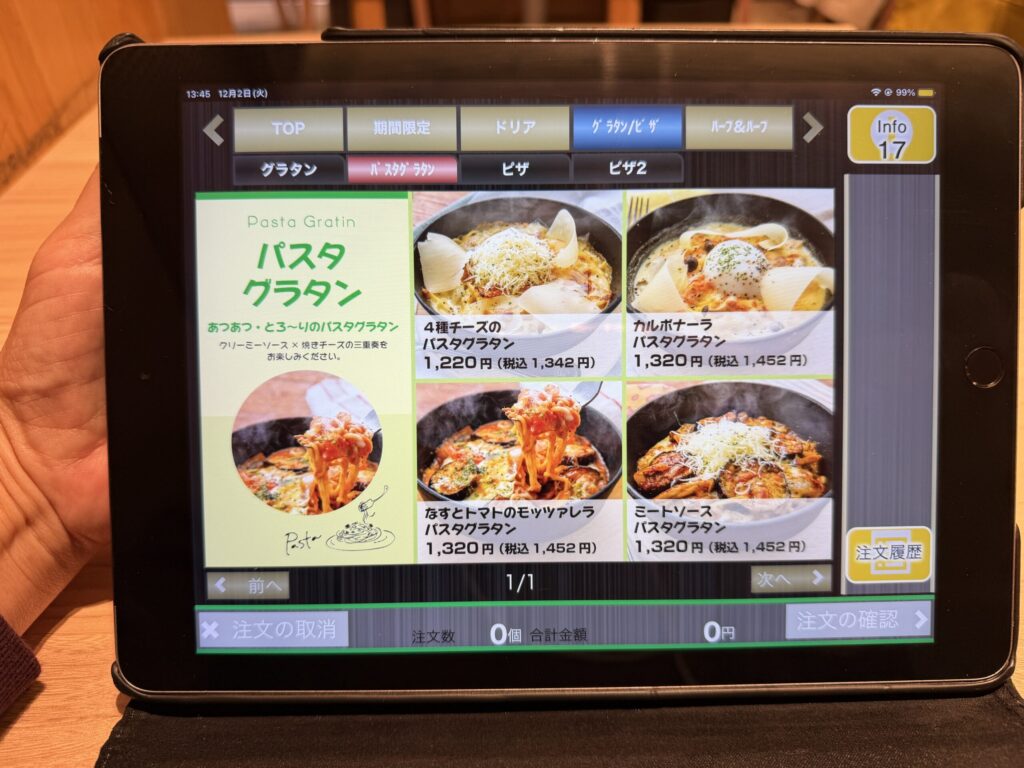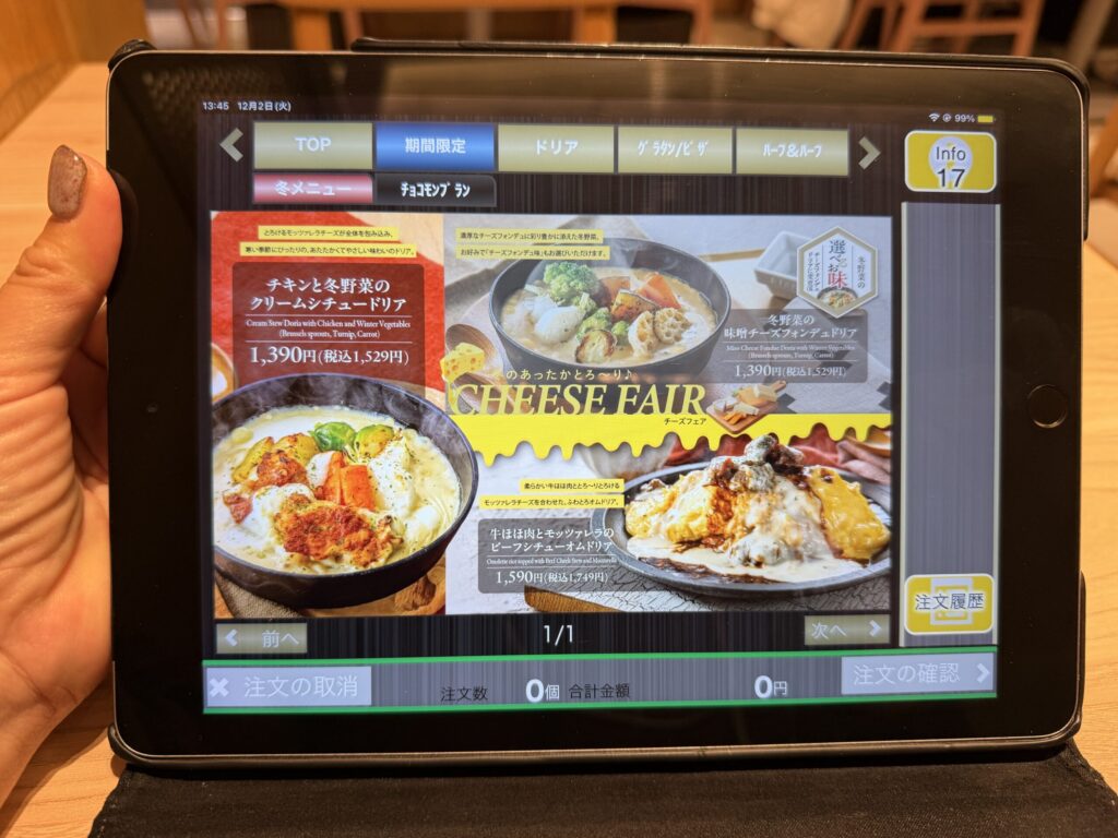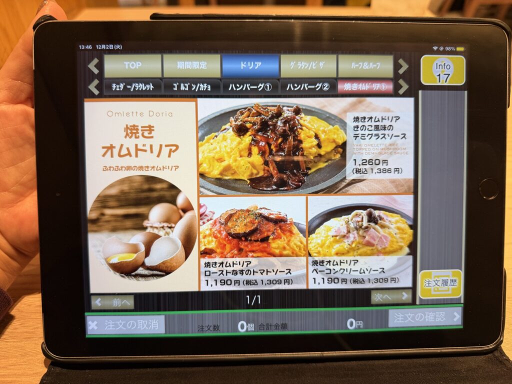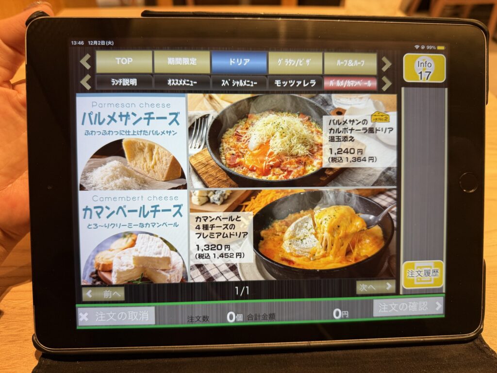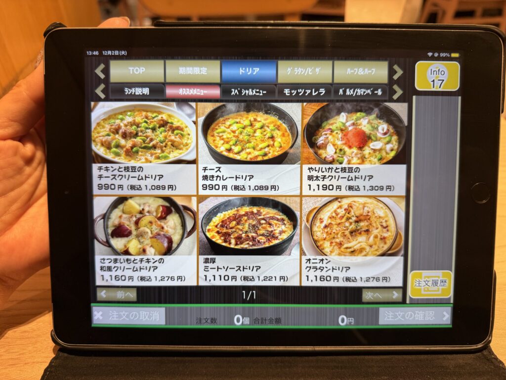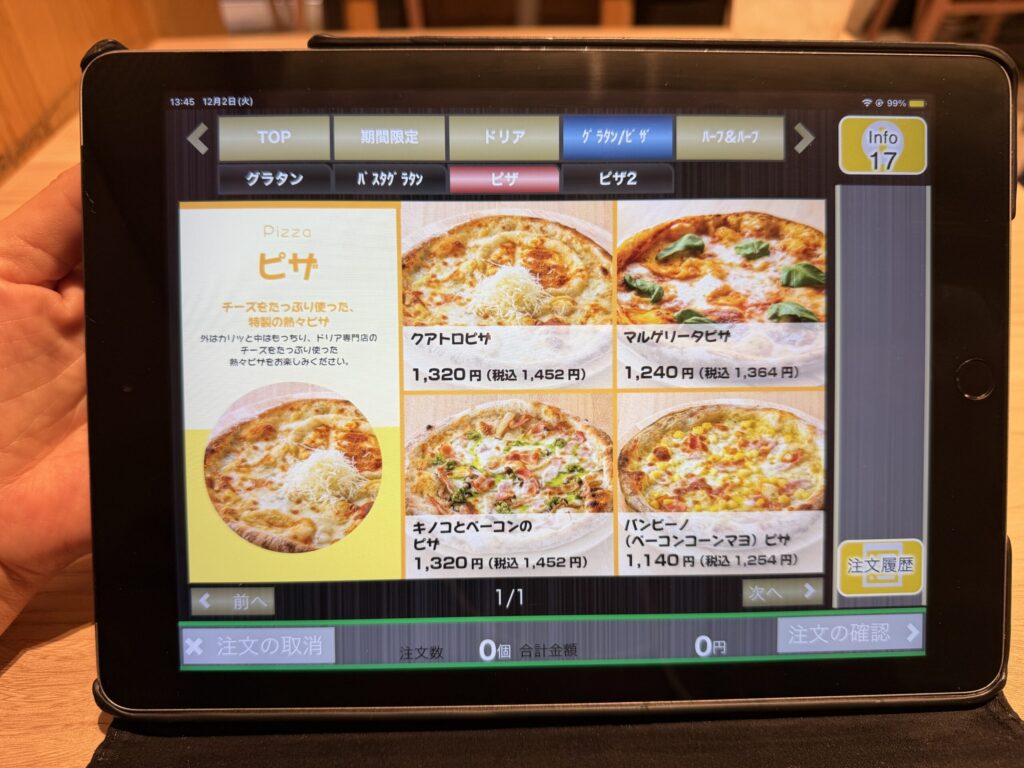 紙モノのメニューは全く見当たらずタブレットが置かれていました。もうお馴染みの光景とはいえ少し寂しいな。