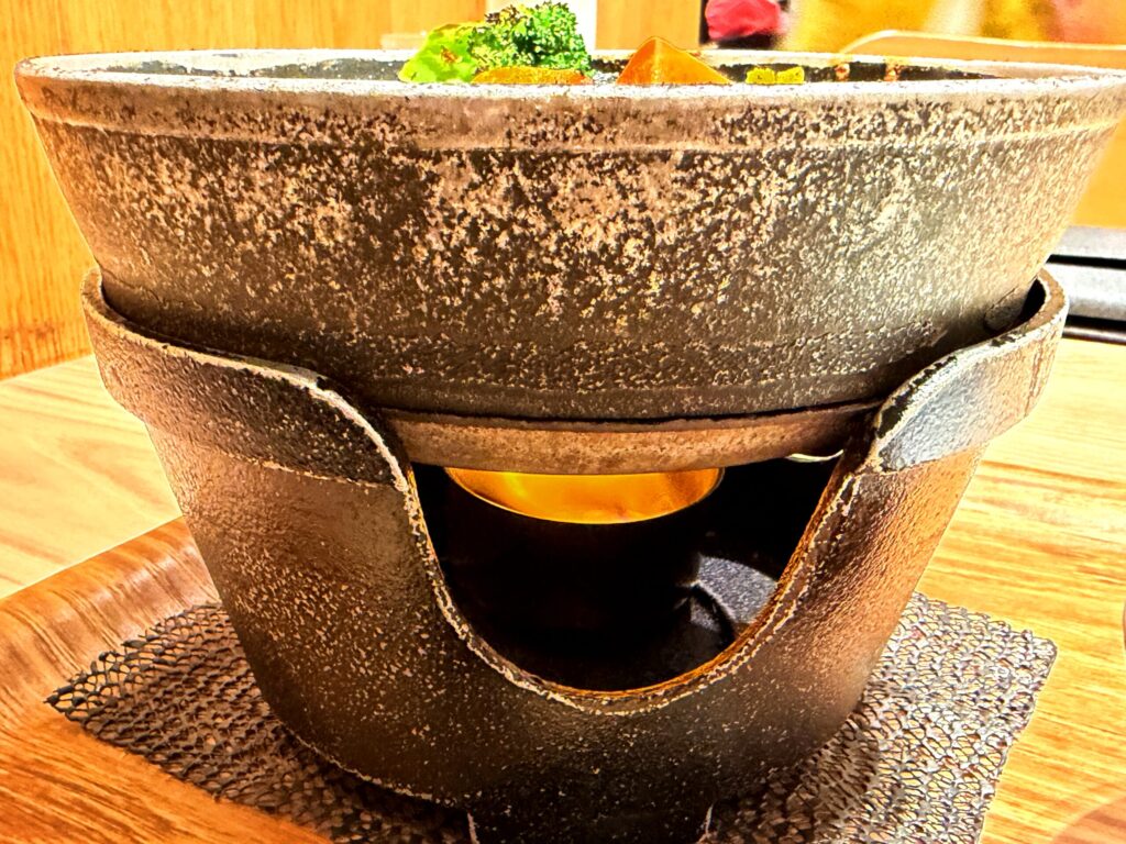 常にアツアツの秘密はこれなのです!固形燃料で下から炎でグツグツとしてくれているのです!なるほど!