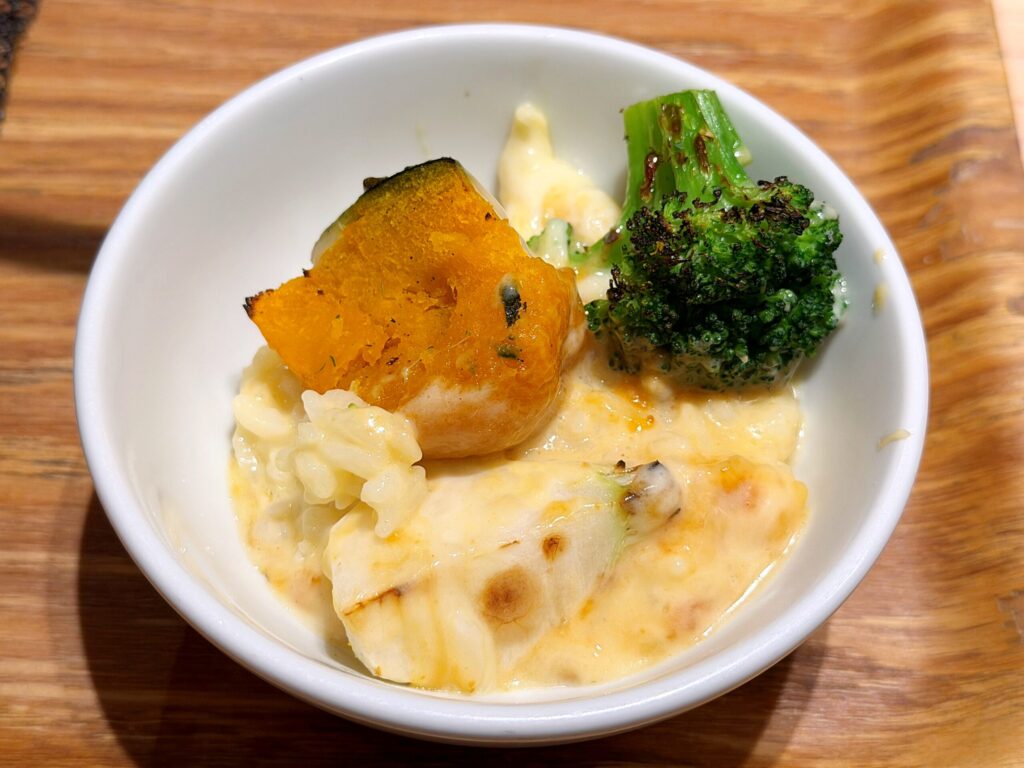 ラクレットチーズを追加したのでもうこれは贅沢の極み!チーズ好きにはたまらないドリアになりました!苦手な野菜たちも優しく包んでくれそうです。